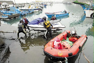 原本預定今天在瑪鋉漁港跳海的王世堅突然又改變地點,讓大批海巡人員在海岸旁枯等。 聯合晚報圖