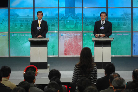 主辦單位公視說,在辯論會前就曾邀集雙方陣營代表,提出兩位候選人身高加鞋子的高度。謝營回報一米六五,馬營回報一米八一,相差十六厘米。公視特別訂制了厚十五厘米的臺子給謝長廷,力求在畫面上馬謝“齊頭式”平等。