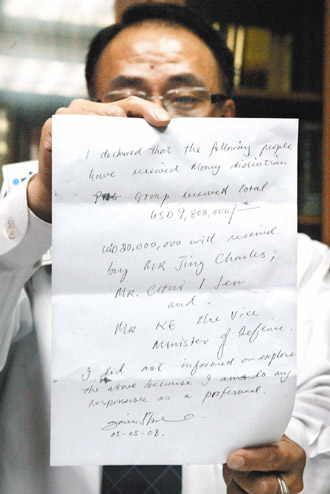 吳思材的委任律師徐景星公布了吳親手寫的“保命信”,使得檢方連夜展開偵辦。 來源:臺灣聯合報