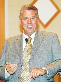 全球領導力大師馬克斯韋爾11日在臺演講。 臺灣聯合報圖