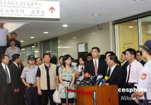 圖為陳水扁在出庭應訊后對媒體表達看法。不久的將來,他將面臨對其貪污的審判。 中新社發 黃少華 攝