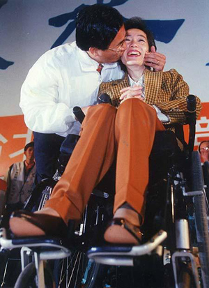陳水扁出獄后,便推著妻子的輪椅,開啟了自己的競選常勝之路。從“立委”選舉到臺北市長選舉,再到2000年、2004年兩次臺灣地區領導人選舉,但凡選情混沌不明或者處于劣勢之際,半身癱瘓的吳淑珍就會挺身而出,打出無堅不摧的悲情牌。