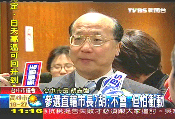 胡志強說:“基本上我沒有改變心意,我現在最怕的就是用‘愛臺中’、‘愛臺灣’這種理由來逼我,大家也知道我有時難免感情用事、失去理智,但到現在為止,你問我,我是理性、理智、平和地告訴你,我不會改變心意。”