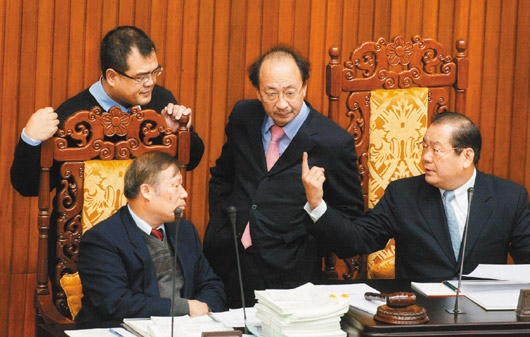 百個(gè)提案,導(dǎo)致“立委”們整晚被綁在議場(chǎng)內(nèi),累得人仰馬翻,多數(shù)人邊聊天、吃東西邊按表決器,根本沒注意在表決哪一案。