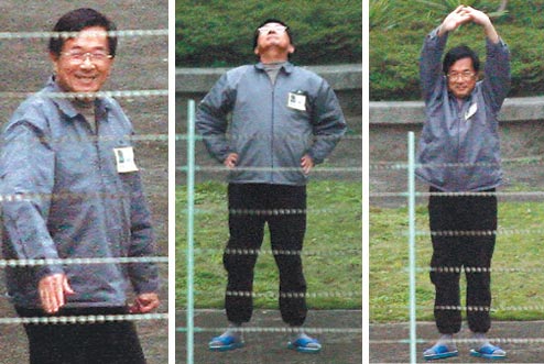 陳水扁12日下午在臺北看守所放風運動,不斷擺姿勢給在附近的臺灣媒體記者拍攝。臺灣《聯合報》資料圖