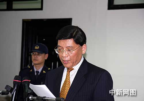 一月七日中午,臺(tái)灣高等法院駁回陳水扁對(duì)二度遭到羈押的抗告,高院認(rèn)為陳水扁委任律師所提抗告沒(méi)有理由,因此予以駁回。全案就羈押部分不得再提抗告。圖為臺(tái)灣高等法院發(fā)言人溫耀源在記者會(huì)上宣布裁定結(jié)果并解釋裁定書(shū)。 (圖文/中新社記者 陳立宇)