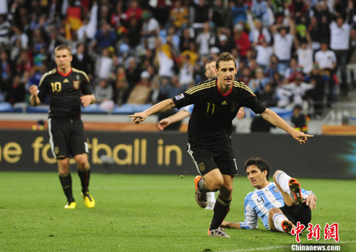 法新社報道的標題為,“德國擊潰阿根廷殺入世界杯半決賽”。報道稱,克洛澤用兩個進球慶祝他的第100場國家隊進球,他幫助德國4比0狂勝阿根廷。