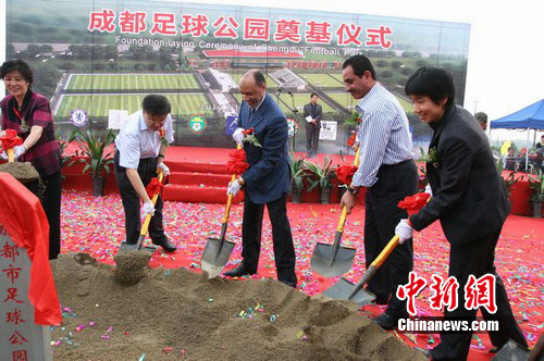 中新網(wǎng)成都7月21日電(記者 楊杰) 21日下午,預(yù)計(jì)投資3000萬(wàn)元人民幣的成都足球公園正式奠基。亞足聯(lián)主席哈曼專(zhuān)程蒞臨現(xiàn)場(chǎng),參加了奠基儀式。
