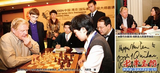 12月15日,2008年中國國際象棋超級大師邀請賽在南京繼續如火如荼地進行,但當天的比賽卻因為一位貴賓的到來顯得黯然失色,他就是“歐元之父”、1999年諾貝爾經濟學獎獲得者羅伯特·蒙代爾。當日,記者在明發珍珠泉大酒店對蒙代爾進行了專訪,這位國際經濟學界的泰斗原來還是一名囯象高手。