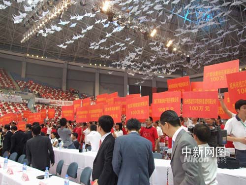 浙江各個企業紛紛為四川災區人民奉獻愛心。作者:周翌