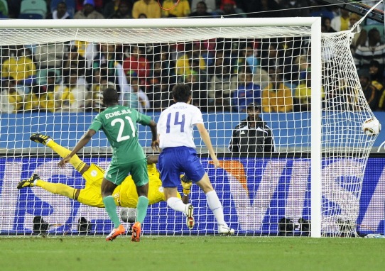 下半場剛開始3分鐘,韓國隊再次在左路發(fā)動進(jìn)攻,希圖在本方禁區(qū)前撞倒了樸周永。樸周永親自主罰任意球,他踢出的皮球從人縫中穿過,在草地上彈了一下后竄入尼日利亞隊的球門。尼日利亞隊門將恩雅瑪雖然做出了判斷,但因為視線被擋撲救不及。這也是本屆世界杯的第一個直接任意球得分。