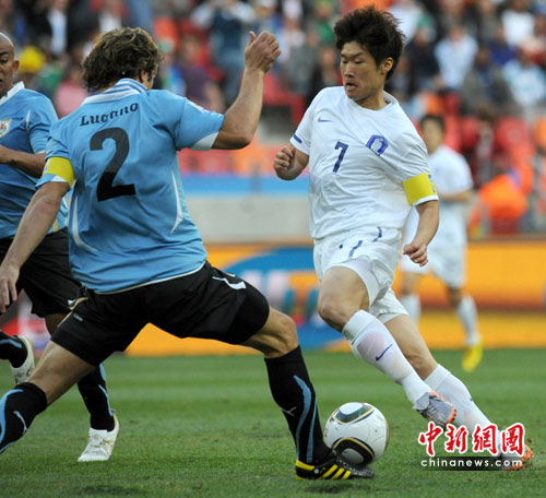 《朝鮮日報(bào)》記者現(xiàn)場發(fā)回的消息稱,南非世界杯首場1/8決賽,韓國隊(duì)以1-2惜敗給烏拉圭隊(duì)。比賽結(jié)束后,球員們難掩失望之情。比賽中,烏拉圭球員蘇亞雷斯在上半場第8分鐘率先破門進(jìn)球。韓國隊(duì)的李菁龍?jiān)谙掳雸龅?2分鐘扳回一球,追平了烏拉圭。然而,韓國隊(duì)最終在下半場35分鐘允許蘇亞雷斯進(jìn)第2粒球。