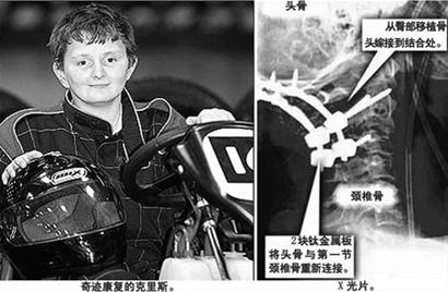 克里斯的母親戴比激動地說:“他終于重返心愛的運動,想到他曾經(jīng)被‘?dāng)厥住@真是一個奇跡。”艾文醫(yī)生表示:“克里斯實在是個‘奇跡小子’。他是世界上唯一一名經(jīng)歷了如此嚴(yán)重的外傷后又重新過上正常生活的人。其他的類似患者雖然也有極個別幸存,可是全都徹底癱瘓。” (朗朗)