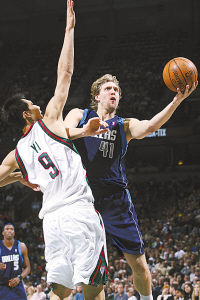 本場(chǎng)比賽的焦點(diǎn)是諾維茨基和易建聯(lián)之間的較量,兩人同為國(guó)際球員,而且身高都是2米13,不同的是諾維茨基如日中天,阿聯(lián)則是希望之星。在8月的德國(guó)邀請(qǐng)賽上,諾維茨基帶領(lǐng)德國(guó)隊(duì)兩次橫掃易建聯(lián)所在的中國(guó)隊(duì)。而本場(chǎng)比賽笑到最后的不再是“諾天王”。易建聯(lián)出場(chǎng)32分鐘,得到了9分和7個(gè)籃板球,在第四節(jié),易建聯(lián)還在諾維茨基的頭上奉獻(xiàn)了本場(chǎng)最精彩的一記大力扣籃。諾維茨基得到了20分和3個(gè)籃板球。
