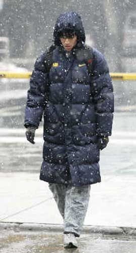 離開訓練館和宿舍里都裝著暖氣的北京回到上海,都快一周了,劉翔依然沒有習慣自己家鄉(xiāng)的天氣。