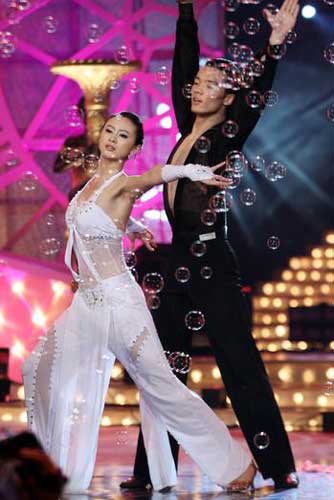 比賽一上場,戴菲菲就仿佛回到了當(dāng)年的競技場,忘情地大舞帶操,一時(shí)間滿臺(tái)飄帶,看得臺(tái)下的觀眾美不勝收,在中段經(jīng)過了男舞伴倫巴的“過渡”,最后一段戴菲菲繼續(xù)演練看家本領(lǐng),最后以一個(gè)“一字開”的標(biāo)準(zhǔn)體操動(dòng)作結(jié)束了整套舞蹈。結(jié)果幾位評(píng)審一致認(rèn)為,戴菲菲唯美的帶操完全壓過了倫巴的風(fēng)頭,正統(tǒng)國標(biāo)舞的動(dòng)作在整套舞蹈中反而是蹤影難尋,并且戴菲菲過于陶醉在自己的體操舞步中,使得男舞伴完全淪為了一片“綠葉”。好在評(píng)委們?cè)诖蚍稚隙歼算客氣,最終戴菲菲以并列第三名的身份順利晉級(jí)了復(fù)賽。