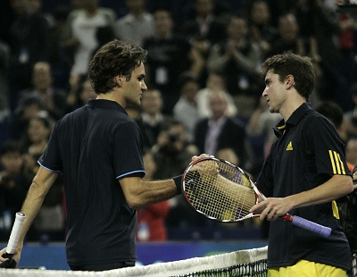 上網沒有威力,正手失去準星。失誤,不停的失誤。費德勒也忍無可忍起來。換了3支球拍的瑞士人卻無奈地發現自己已經回不到勝利的軌道。失敗已經不可避免。隨著西蒙勢大力沉的ACE,費德勒又一次在大師杯首戰落敗。法國人也以兩連勝宣告了自己并不只是替補大師那么簡單,一個讓費德勒更無奈的納達爾出現了。