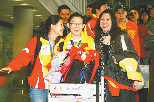 中國女子冰壺隊昨天在韓國奪得世錦賽冠軍的消息在國內(nèi)引起了轟動。今天下午,當(dāng)她們從韓國飛抵北京首都機場后,數(shù)十名守候的記者把她們團團圍住,一向很少有人關(guān)注的中國冰壺姑娘面對大堆相機和話筒,感到受寵若驚,在賽場上以沉著冷靜著稱的隊長王冰玉,在這一刻也激動得說不出話來。