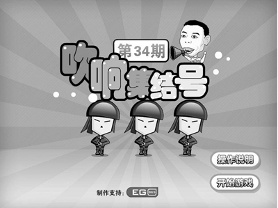記者發(fā)現(xiàn),目前有數(shù)十萬(wàn)網(wǎng)友參與過互動(dòng)惡搞《集結(jié)號(hào)》,其惡搞方式就是拿馮小剛開涮,游戲稱名導(dǎo)馮小剛攜年度大片《集結(jié)號(hào)》再戰(zhàn)內(nèi)地電影市場(chǎng),但當(dāng)今觀眾的欣賞水平越來越高,要求也越來越高,導(dǎo)演面臨的壓力很大。究竟《集結(jié)號(hào)》能否吹響,請(qǐng)你助他一臂之力。而游戲規(guī)則就是:點(diǎn)擊鼠標(biāo)左鍵擊斃沖上陣地的群眾演員,同時(shí)注意不要打中摻雜在其中的明星演員。如果讓敵人沖上陣地或是誤殺一定數(shù)量的明星演員游戲即失敗,參與者的任務(wù)就是,請(qǐng)堅(jiān)守陣地直至集結(jié)號(hào)吹響。