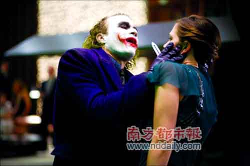 由于希斯·萊杰不久前英年早逝,由他擔任反派的《蝙蝠俠:黑暗騎士》忽然平添了幾分憂傷,他一臉灰白抹上大紅色笑臉的小丑裝扮讓人不禁心酸。