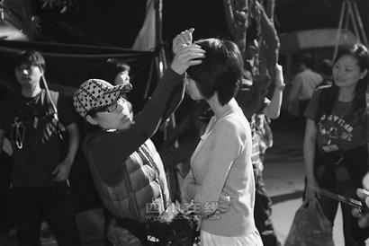 昨日拍攝的戲其實并沒有太多復雜的內容,畫面就是高圓圓和鄭宇成在一條老巷子里面邊走邊說的畫面,不過兩人來來回回走了一晚上,拍攝了一個通宵。為了營造一種雨后的氛圍,劇組人員用水管將整個小巷子澆得濕漉漉的,連墻體都要全部澆濕。住在巷子里的居民都成為了群眾演員,該開店還開店,該打麻將還打麻將,只是不能在巷子里走動而已。因為兩人全部用英語對白,所以每次拍戲前高圓圓都拼命地練英語,特別是她還要背草堂的英文解說詞,難度很大!罢f好英語可能不容易,說熟了總沒問題吧?隨便什么語言,說上1000次,總歸熟練一點。”