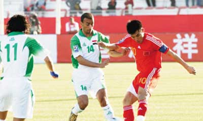 落后之后,福拉多迅速調兵遣將,他先后遣上了中超先生杜震宇和王棟。第65分鐘,中國隊禁區內獲得一個禁區內間接任意球,但是最終杜震宇的射門被對方防守球員擋出。第70分鐘,中國隊再次迎來轉機。伊拉克隊中場核心阿克拉姆由于對劉健犯規吃到第二張黃牌下場,伊隊少打1人。第75分鐘,中國隊終于扳平了比分,拯救中國隊的正是兩天前歸隊的鄭智。王棟右路開出角球,鄭智頭球攻門得手,比分變成了1∶1。