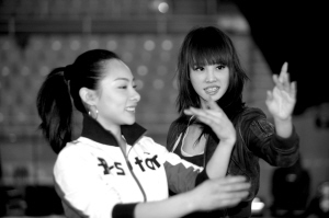 兩年前蔡依林在北京舉行專輯《舞娘》的記者會,劉璇曾經以嘉賓的身份現身助陣。如今兩人再次相見,劉璇驚嘆:“你怎么又瘦了呀?”采訪現場,蔡依林即興秀了一段為歌曲《舞娘》編排的彩帶舞。劉璇看到蔡依林腳下大約10厘米的高跟鞋,走上前提醒說:“你就不要跳起來了,只要做手部動作就可以!眲㈣艘矍暗捻椖渴歉偧俭w操,蔡依林的彩帶舞屬于藝術體操,兩者從技術等方面來說還是有區別的。“但是我可以在動作、腳步和姿勢上指導一下,比如一些細節。因為我覺得在整套動作中,細節是很重要的!痹趧㈣v解時,蔡依林一邊聽一邊點頭,非常認真。她透露,除了彩帶舞還將在北京演唱會上表演“高空無重力雙環瑜伽”等體操動作。
