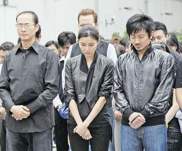 中新網(wǎng)5月20日電 香港無(wú)線全體演職員昨天中午于將軍澳電視城發(fā)起默哀活動(dòng),逾百位藝員及數(shù)百位職員合共500多人,齊集電視城停車場(chǎng),在無(wú)線總經(jīng)理陳志云帶領(lǐng)下,于14時(shí)28分為四川汶川大地震遇難的同胞默哀3分鐘。默哀開(kāi)始不久即下起毛毛細(xì)雨,多位藝人包括關(guān)菊英、苗僑偉、蒙嘉慧、陳法拉等于默哀時(shí)不禁落淚,場(chǎng)面莊嚴(yán)而凄涼。