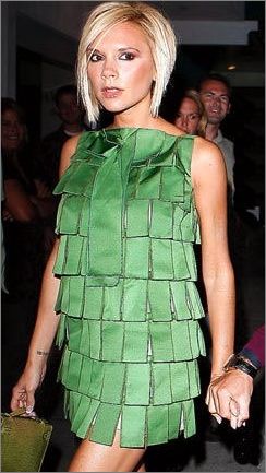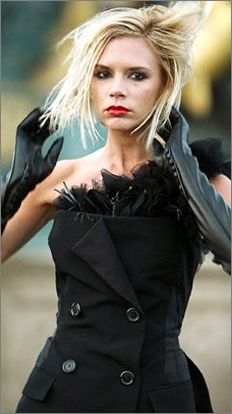 點評:還記得《101只斑點狗》里的皮革愛好狂克魯拉嗎?貝嫂的黑色斜肩小禮服雖然酷味十足,看看一頭凌亂的金發(fā)和烈焰紅唇,頗有克魯拉刻薄的姿態(tài)。