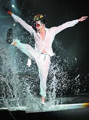 作為系列演唱會的保留項目,這次水花舞林表演環節賦予不少新的東西,首先是首次在T臺上表演,更加拉近與觀眾的距離;其次是前晚的氣溫只有10℃,在如此低溫的環境下“玩水”會令人更加興奮。在緩緩的流水聲中,整個舞臺被注滿了水,像一個巨型水池。在《唱這歌》的音樂聲中,身穿白色全套透視裝的郭富城現身跳起勁舞,水花一直濺射到臺下,觀眾也很興奮地迎水而舞,郭富城的紅色防水內褲也都完全展露出來,盡顯誘惑味道。而最后演唱《著迷》的時候,郭富城更用毛巾拍打舞臺的水,產生更多水花,將觀眾的熱情推向高潮。
