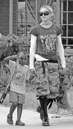 3月30日,麥當娜和她領養的馬拉維男童戴維·班達來到馬拉維首都利隆圭以南50公里的一所學校參觀。