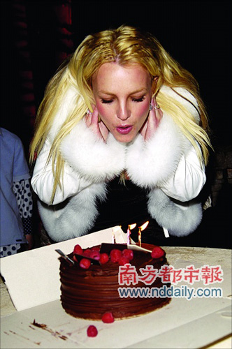 在ScandinavianStyleMansion上,主辦方就溫馨安排了生日慶祝,呈上生日蛋糕,布蘭妮一臉甜蜜地吹滅了蠟燭。之后她與堂妹AliSims以及帕麗斯一起再去比弗利山莊酒店慶祝,《紐約郵報》說她又喝了酒,完全無視離婚時的禁酒令。
