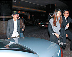 中新網(wǎng)1月2日電 陳冠希與女友Vincy前晚(12月31日)參加君悅酒店迎08派對,陳冠希見到記者采訪時已露出黑面,并急步拖女友進場。