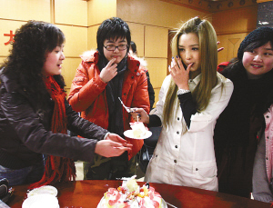 自超女比賽結(jié)束后,何潔的話題新聞就源源不斷:頒獎(jiǎng)禮上摔倒、跪著接受采訪、機(jī)場(chǎng)昏倒、出車禍……儼然成了“話題女王”。昨日下午,她作客本報(bào)與山城“盒飯”歡聚一堂,坦然表示歡迎大家問“負(fù)面新聞”,還親手為“盒飯”切蛋糕。