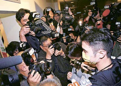 欣宜則于7時許再折返醫院探媽咪,現場聚集了數十名記者,故醫院方面也派出4個保安為她開路。欣宜戴上口罩,幾經辛苦才能沖過人墻入病房,她并沒有接受訪問。