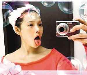 女星伊能靜自拍“浴照”,2月29日大量上載在博客上,引起粉絲熱烈討論,穿著紅色浴袍、素顏的伊美眉,擠眉弄眼,洗了2小時美容澡的她,形容自己的皮膚有如珍珠一般,超“卡哇依”(可愛),她還把浴照制作成卡片方式,強烈的卡通漫畫風格和她平日的浪漫唯美形象實在差很多。