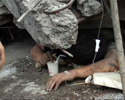《冷暖人生》以關(guān)注人性著稱,這一次他們也將透過新聞報(bào)道,更多地記錄那些災(zāi)難背后受難者的人生巨變,力圖展示整個的救援情況,并帶回去更多人性的故事。曉楠介紹說:“現(xiàn)在我們主要有幾個方向,比如說在都江堰,因?yàn)閺臑?zāi)區(qū)很多地方出來的人,是通過沖鋒舟被運(yùn)出來的,有很多親人在渡口上長時間的等待,看運(yùn)過來的人其中有沒有自己的親人,所以我們可能會制作一期節(jié)目就叫《渡口》。記錄那些人的漫長煎熬的等待,還原很多等來和沒有等來親人的故事。因?yàn)槲姨貏e想把他們還原成比較鮮活的生命,他們原來的夢想和生命進(jìn)程是什么,他們的喜怒哀樂突然間戛然而止。對他們來講,生命的感覺,包括對他們親人來講,可能我們更能理解,這次災(zāi)難在人的身上所留下的巨痛。同時,也是它所折射出人的力量是怎么樣的。另外,我們可能還會去做一些學(xué)校的采寫,用我們的視角去還原原來的一個班。總之,還是去記錄人,我們的目的是尋找人的故事,去尋找人生命的故事。當(dāng)然,還有救助的那些人,在這一時刻他們和素不相識人的命運(yùn)連在一起。”