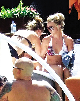 上周日,布蘭妮亮相度假村內(nèi)的游泳池邊,享受周末午后時光。身穿性感比基尼的她依舊是粗腰肥臀,身材無改善,兩位身材健碩的保鏢如影隨形地保護她的安全。