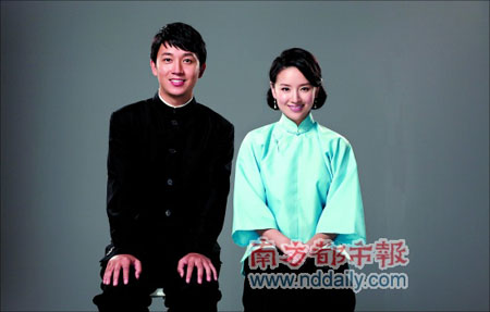董潔和潘粵明一中一西的兩款結婚照,都是喜氣洋洋。