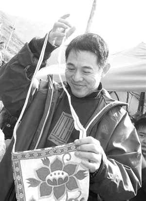 李連杰在俄布羌寨里為80多位繡女一一發放了繡片和羽絨服后,被媒體團團包圍的他慷慨陳詞:“我和羌族婦女就業幫扶中心合作,這次給你們帶來的不是現金和鈔票,我是想讓你們掌握一門生產技能。我們的援助計劃是要在汶、理、茂三個地方建立12個羌繡幫扶點,現在已經有1100人加入進來,每個月能給每個人帶來600—1000元的收入。你們來做羌繡,我們來幫你們銷售,不光幫助你們走出困境,也可以讓當地的經濟可持續發展。”