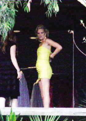 英國超模凱特·摩絲上周六在洛杉磯拍時裝照,穿著黃色連衣裙的她在沒有放下簾子的落地大玻璃前更衣,結果被狗仔隊拍下整個換衣過程,照片中可見一名女更衣助理及發型師等同場。凱特·摩絲脫裙子時,因沒有穿內衣,三點盡露。有八卦網站還幸災樂禍地說照片中的她肚子有贅肉,需要減肥。