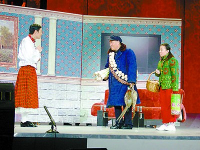 之前趙本山已經和其他三位進行了為期兩周的排練,這次一亮相,期待已久的現場觀眾就報以熱烈的掌聲。可惜昨日久經沙場的趙本山出現了失誤,竟然把小沈陽身穿富有 “蘇格蘭情調”的打扮說成了 “蘇格蘭調情”,讓臺下觀眾一陣哄笑。