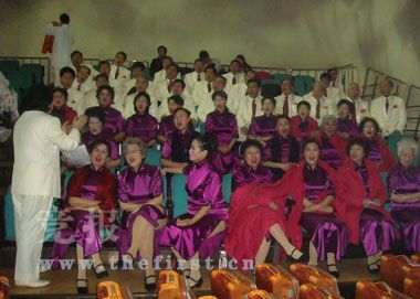 沈陽市大東區(qū)萊茵河畔社區(qū)合唱團(tuán)的48位老年團(tuán)員前晚才抵京,昨日就加入彩排中。雖然只是彩排,但老人們的神采奕奕依然博得觀眾稱贊。他們將在零點(diǎn)鐘聲敲響前,作為《神州共舉杯》節(jié)目的重要部分。