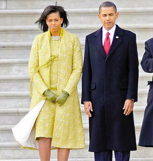 新任美國總統(tǒng)奧巴馬的妻子米歇爾在典禮上的穿著,時尚界評價不一,設(shè)計師托雷多說,黃色并非政治場合的傳統(tǒng)顏色,不過它傳達(dá)了希望與樂觀的意象。托雷多說,她是用瑞士羊毛蕾斯混法國絲的布料,裁制那套衣服,黃色代表陽光。
