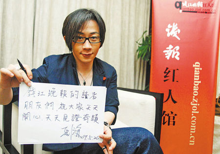 2009年兩大春晚紅人之一——劉謙,來到錢報紅人館做客了。坐在本報記者面前的沙發(fā)上,遭遇到“近景魔術是否將如同選秀一樣走向死亡”這樣并不令人愉快的話題,劉謙連眉毛也不跳一下,依舊保持著他典型的職業(yè)化的笑容,胸有成竹地拆招:“就算選秀死了,不代表將來人們就不唱歌了,魔術同樣是不可缺少的。其實,我根本不擔心這個問題。”