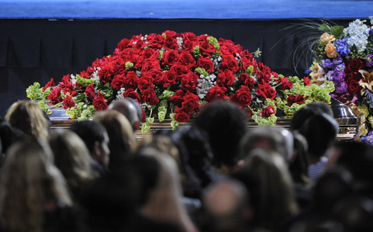 這場(chǎng)歷時(shí)兩個(gè)半小時(shí)的公眾追思會(huì)于當(dāng)?shù)貢r(shí)間7日上午十點(diǎn)(北京時(shí)間8日凌晨1點(diǎn))在洛杉磯斯臺(tái)普斯中心舉行,現(xiàn)場(chǎng)涌入1.1萬(wàn)名靠抽簽取得的免費(fèi)入場(chǎng)券歌迷,包括瑪麗亞.凱莉、奎恩.拉蒂法、籃球巨星科比和魔術(shù)師約翰遜在內(nèi)的眾多重量級(jí)明星,都上臺(tái)回憶自己與杰克遜的往事。