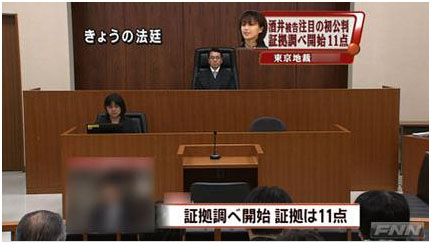 當公訴人檢察官拿著一張鋁箔紙走到酒井法子面前問道:“這個是警方從你家中的化妝臺里找到的。是你的東西吧?”酒井法子回答說:“是的!苯又,檢察官又拿出了一個裝有毒品的小塑料口袋,讓酒井法子看,然后問她:“這也是你的東西吧?”酒井法子回答說:“是的!弊詈,檢察官問:“這個口袋你就不要了吧?”酒井法子小聲地回答說:“是的。”作者:蔣豐