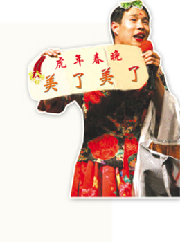 趙本山領軍的“本山傳媒集團”在這幾年迅速拓展成一個強大的傳媒帝國,其視野、野心都很大,他們目前的產業范圍有影視劇拍攝、舞臺演出(劉老根大舞臺)、綜藝節目等等,他們的下一步目標是像華誼兄弟那樣上市。不過,可能大家也注意到了,這個龐大的傳媒集團幾乎沒有音樂產業。目前,趙本山很想將這一塊建立起來。而小沈陽和他的另一個歌手徒弟湯潮,就擔當了重任。他們不僅組成了“潮陽兄弟”的組合,還不斷推出了一些歌曲。這次,本山傳媒向春晚遞交的小沈陽的音樂作品,就是這支組合去年的單曲《美了美了》。而春晚的強大影響力,肯定可以在一夜間就推動本山傳媒的音樂產業部分。