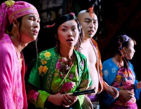 不知《三槍》中的這段舞能否征服觀眾,但有一點可以肯定,這么干把一群演員難為得夠嗆。據記者了解,最讓“三槍”演員痛苦的恰恰是學跳舞。片中有一段群舞,要求每個演員都要跳。可閆妮、小沈陽和倪大紅都毫無功底,身體協調性差,一個簡單的步伐怎么練都不得要領,跳起來不是像做廣播體操就是像“摸了電門”。而為避免他們在全國觀眾面前“摸電門”,導演張藝謀親自上陣教舞,記者在片方發來的花絮中看到他比劃著,差點把閆妮和倪大紅給看傻了。