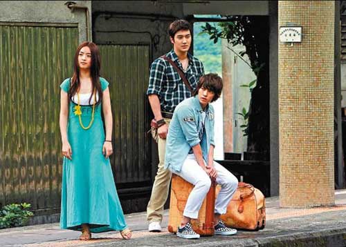 林依晨,崔始源和李東海三人昨天早晨在臺灣宜蘭大溪車站秘密會合,一碰面就拍離別戲碼,畫面離情依依默契滿分。